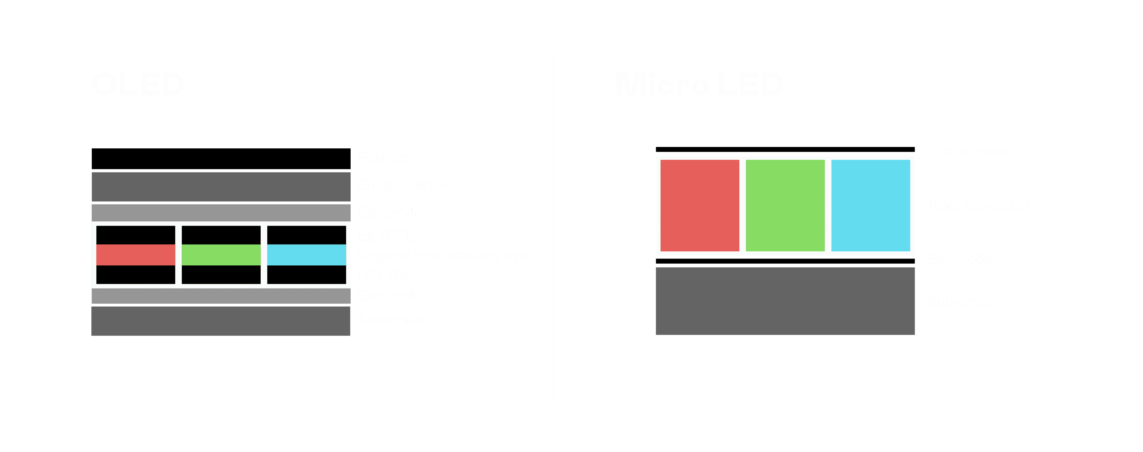 以 LED 做为显示画素,,可让 LED 的发光效率发挥到极致,,,从而让显示器具备优异的亮度表现,,不论是在户外或室内,,,均具备出众的显示效果。。。。同时,,与使用有机材料的 OLED 相比,,,LED 具备更稳定、、、寿命更长的特性,,不仅不会有画面烙印问题,,,而且更不容易出现故障、、坏点。。。。