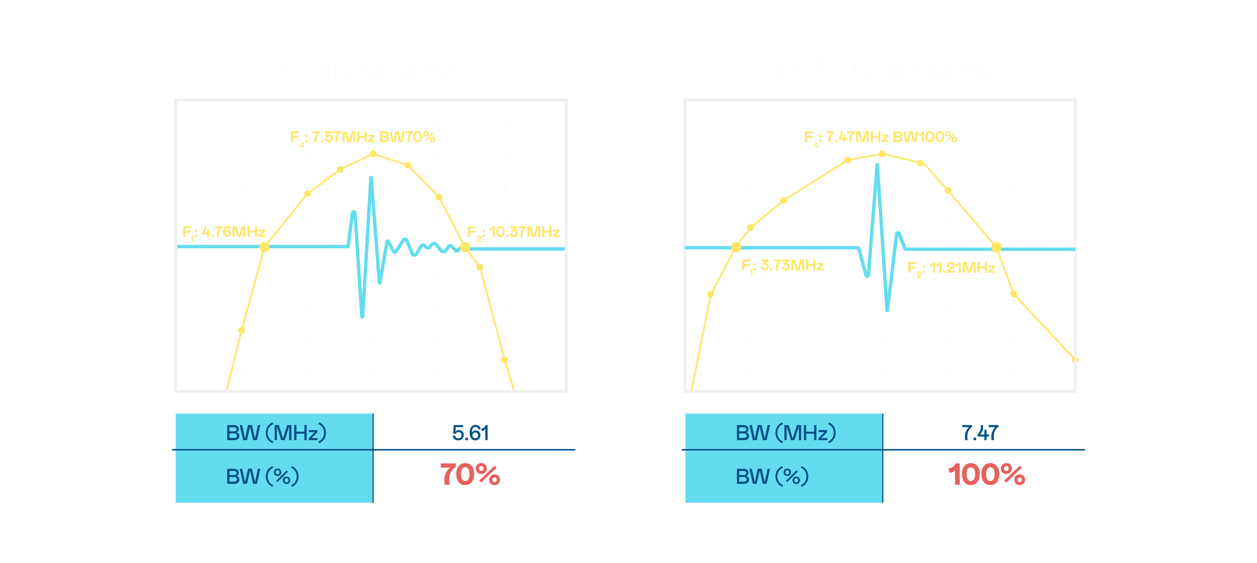 超音波影像的解析度高低,,,,首先取决于探头能发出的讯号频宽。。彩神vll CMUT 可提供高清晰的超音波讯号,,提供高频宽、、、高灵敏度、、、影像纹理细节更高的超音波影像,,协助医护人员缩短影像判读时间及利用精准的医疗影像进行诊断。。。